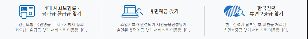 사회보험료나 공과금 환급금이나 한국전력의 휴면보증금도 찾아볼 수 있으니 진정 통합서비스네요.
