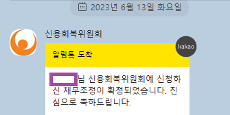 저는 지난 6월 13일에 신용회복위원회로부터 채무조정확정을 받아 채무를 변제중에 있습니다.